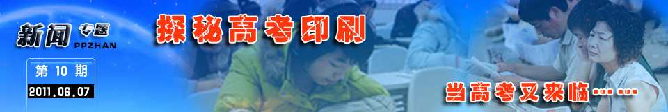 | 又一年的高考又将来临,从5月中旬开始,吉林省九台市教育印刷厂作为高考试卷印刷地已经进入了繁忙的印刷工程。一直到高考结束,承担高考试卷印刷任务的100多名工人必须禁足在厂区内的核心禁区,吃住在里面,与外界断绝一切联系,不能上网、不能电话,甚至连他们产生的生活垃圾都要经过特殊处理。而这一切,都是为了试卷的绝对安全保密……[详细] |